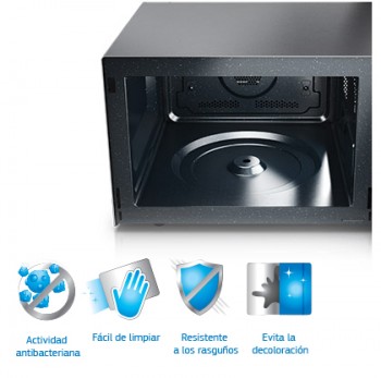 El esmalte cerámico al interior del microondas Samsung es durable, higiénico y fácil de limpiar, además de ser resistente a rayaduras y al óxido.